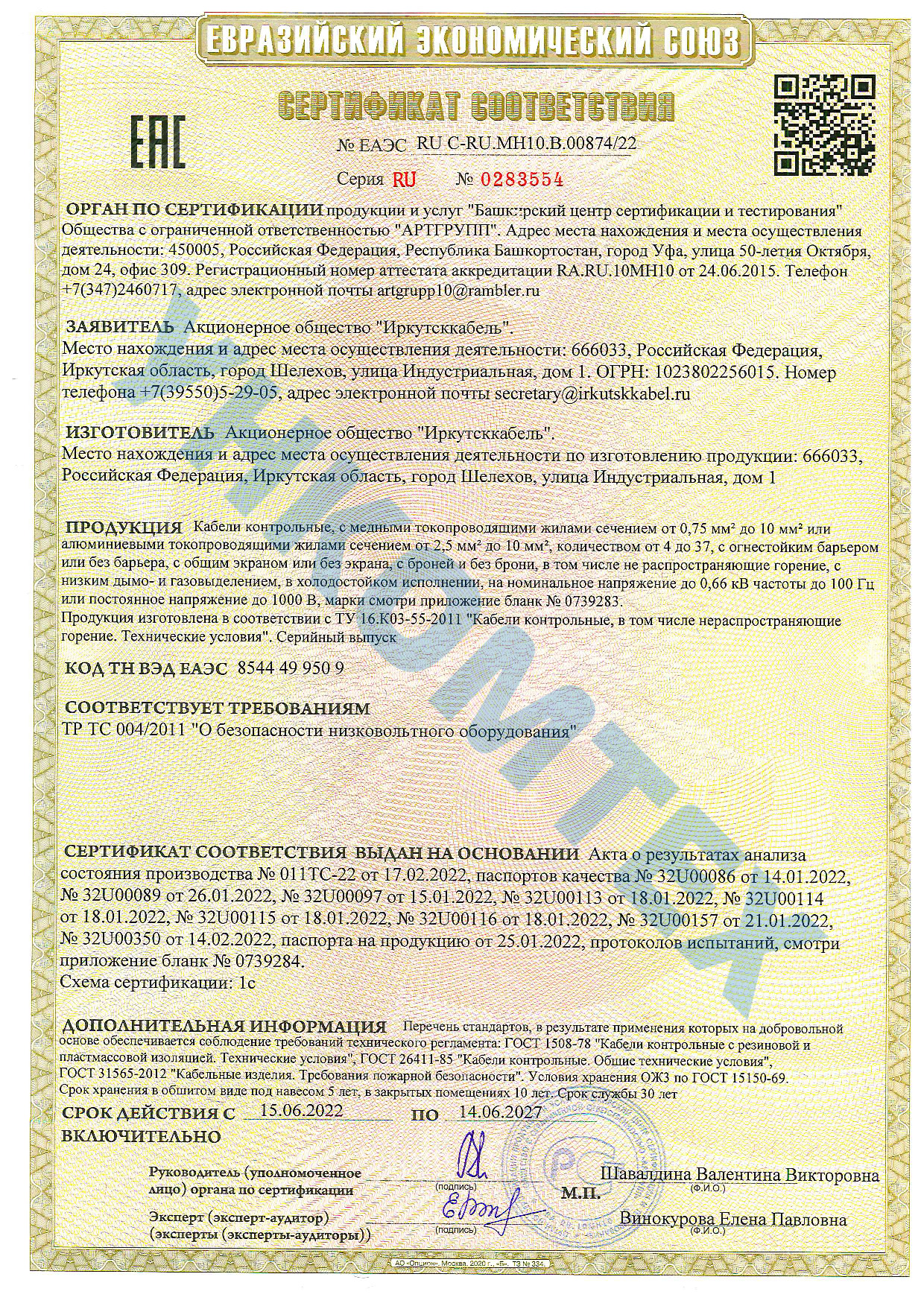 Применение: для прокладки одиночных кабельных линий в кабельных сооружениях и помещениях при отсутствии механических воздействий на кабель. Кабели могут быть проложены на открытом воздухе. Кабели предназначены для общепромышленного применения