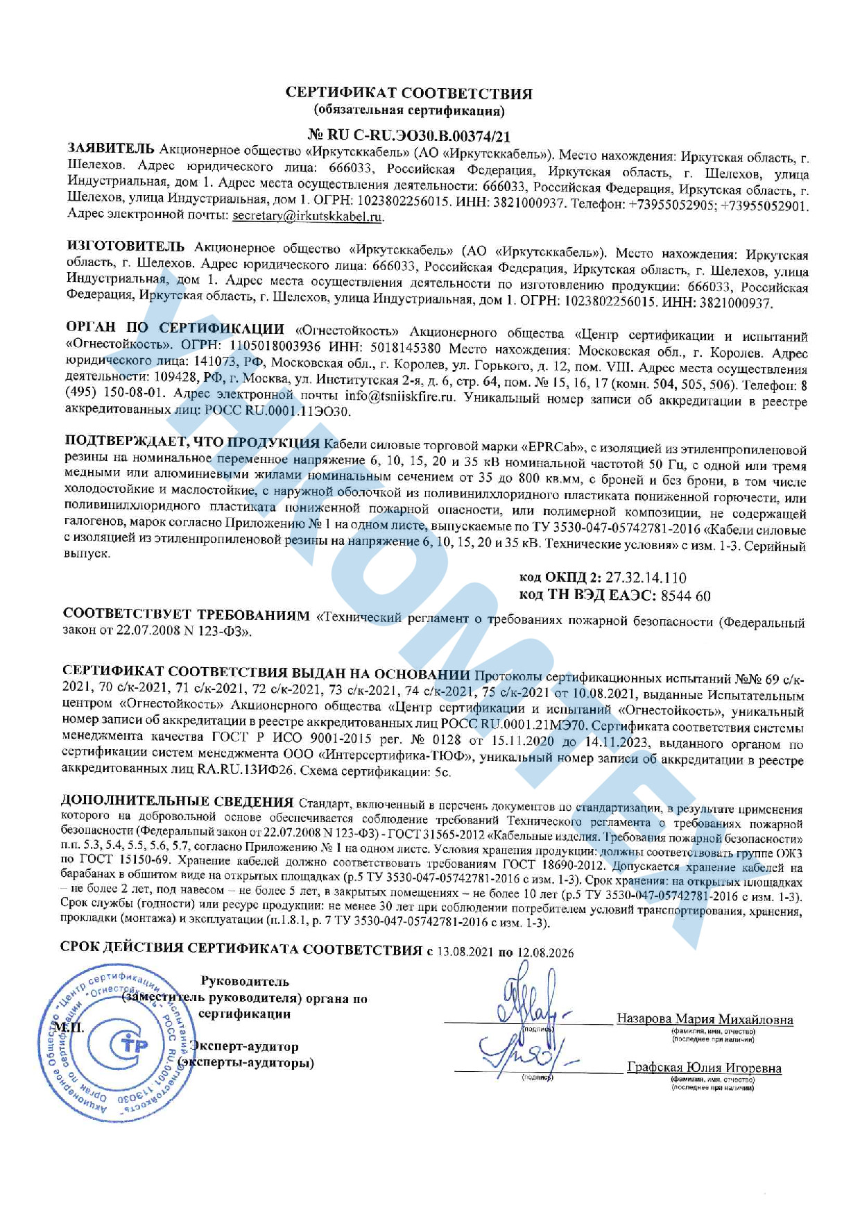 Иркутсккабель_RU С-RU.ЭО30.В.00374-21