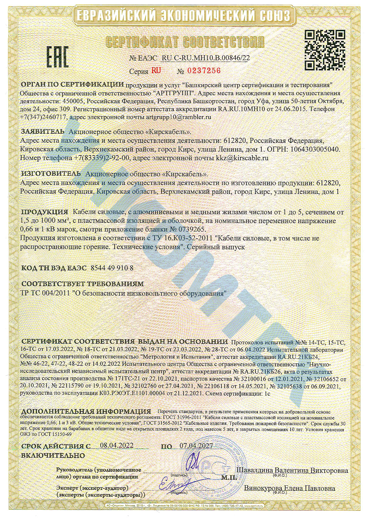 Применение: Для эксплуатации в электрических сетях переменного напряжения с заземлённой или изолированной нейтралью, в которых продолжительность работы в режиме однофазного короткого замыкания на землю не превышает 8 ч, а общая продолжительность работы в режиме однофазного короткого замыкания на землю не превышает 125 ч за год. Для прокладки без ограничения разности уровней по трассе прокладки, в том числе и на вертикальных участках. Для электропроводок помещений, оснащенных компьютерной техникой и микропроцессорной техникой, электропроводок цепей систем пожарной безопасности (цепи пожарной сигнализации, питания насосов пожаротушения, освещения запасных выходов и путей эвакуации, систем дымоудаления и приточной вентиляции, эвакуационных лифтов). Для электропроводок в операционных отделениях больниц, цепей аварийного электроснабжения и питания оборудования (токоприемников), функционирующих при пожаре. Кабели изготавливаются для общепромышленного применения при поставках на внутренний рынок и на экспорт.
