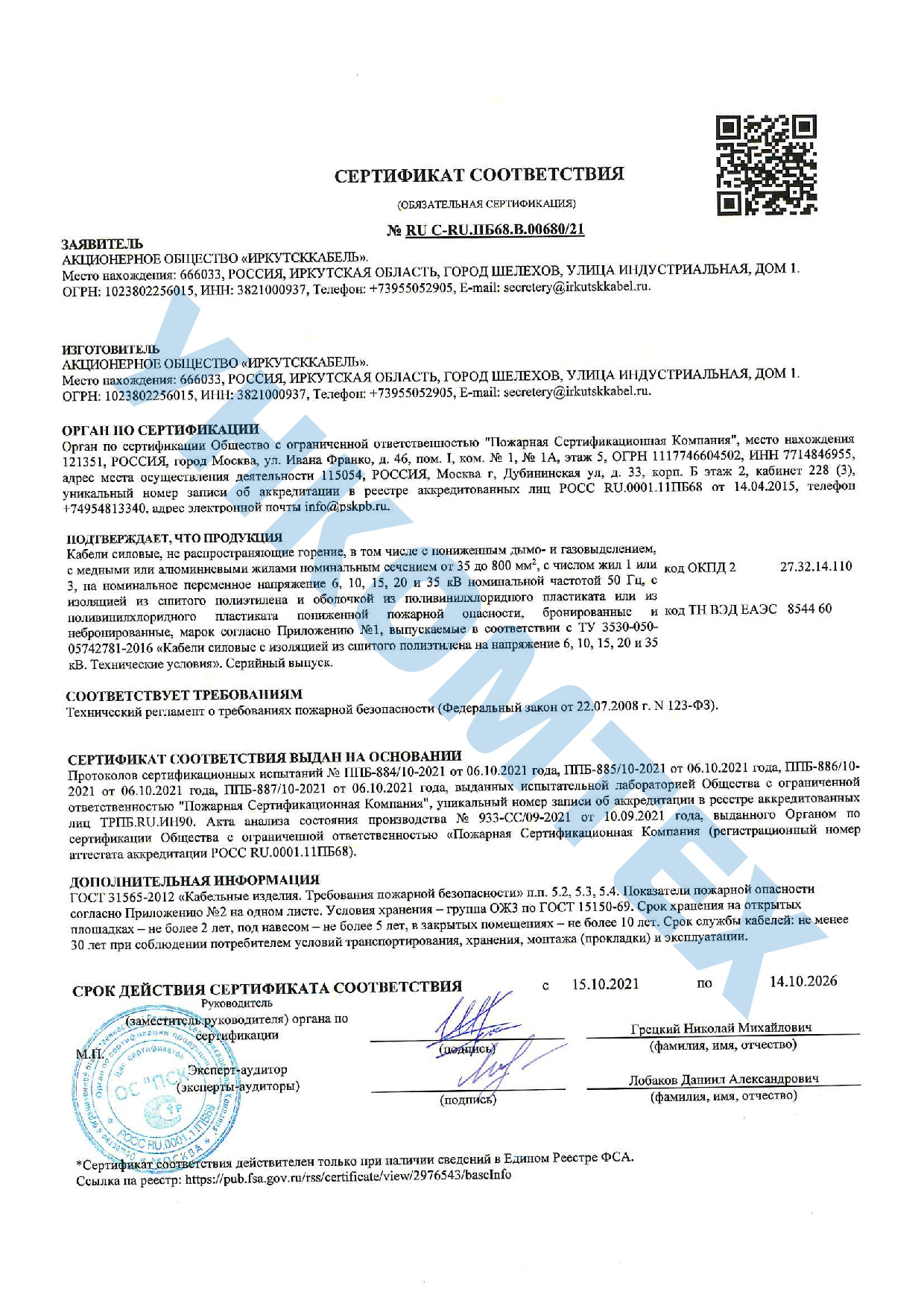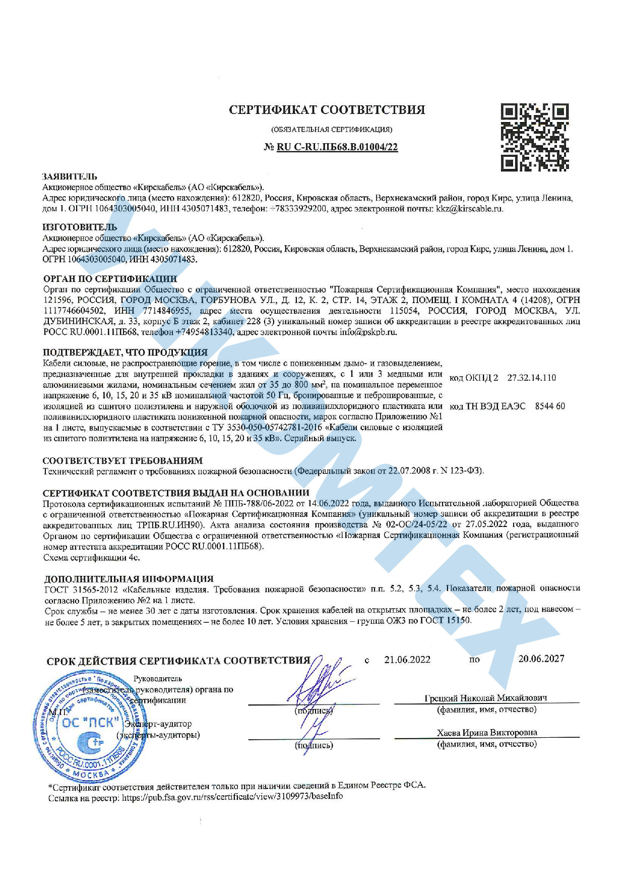 Силовой кабель с медными жилами с изоляцией из сшитого полиэтилена в оболочке из поливинилхлоридного пластиката пониженной пожароопасности с низким дымо- и газовыделением.