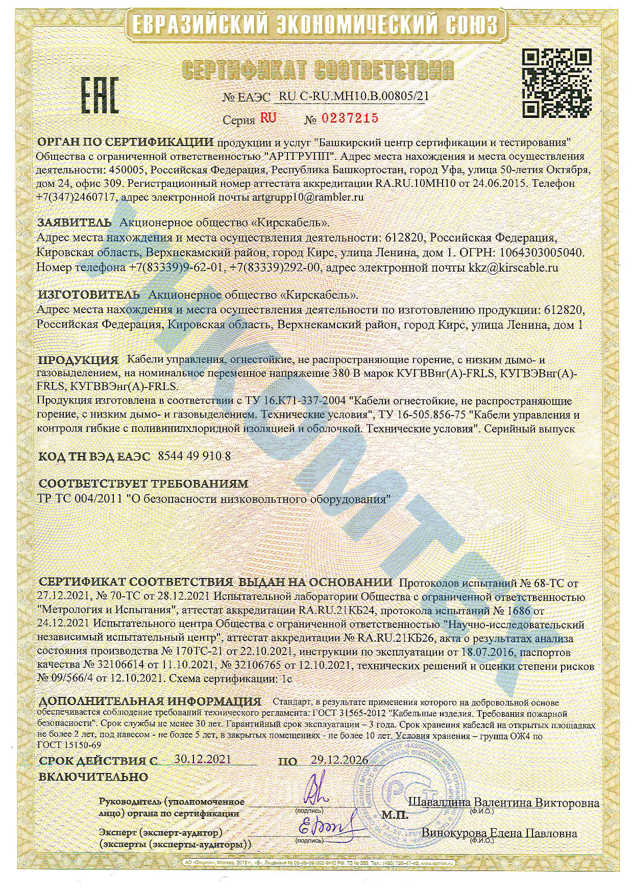 Применение: Кабели предназначены для эксплуатации на атомных станциях (АС) и для общепромышленного применения, при поставках на внутренний рынок и на экспорт. Для фиксированного монтажа цепей управления и контроля, работающих при напряжении до 380 В переменного тока частоты 50 Гц или 500 В постоянного тока. Для прокладки в системах противопожарной защиты, а также других системах, которые должны сохранять работоспособность в условиях пожара.