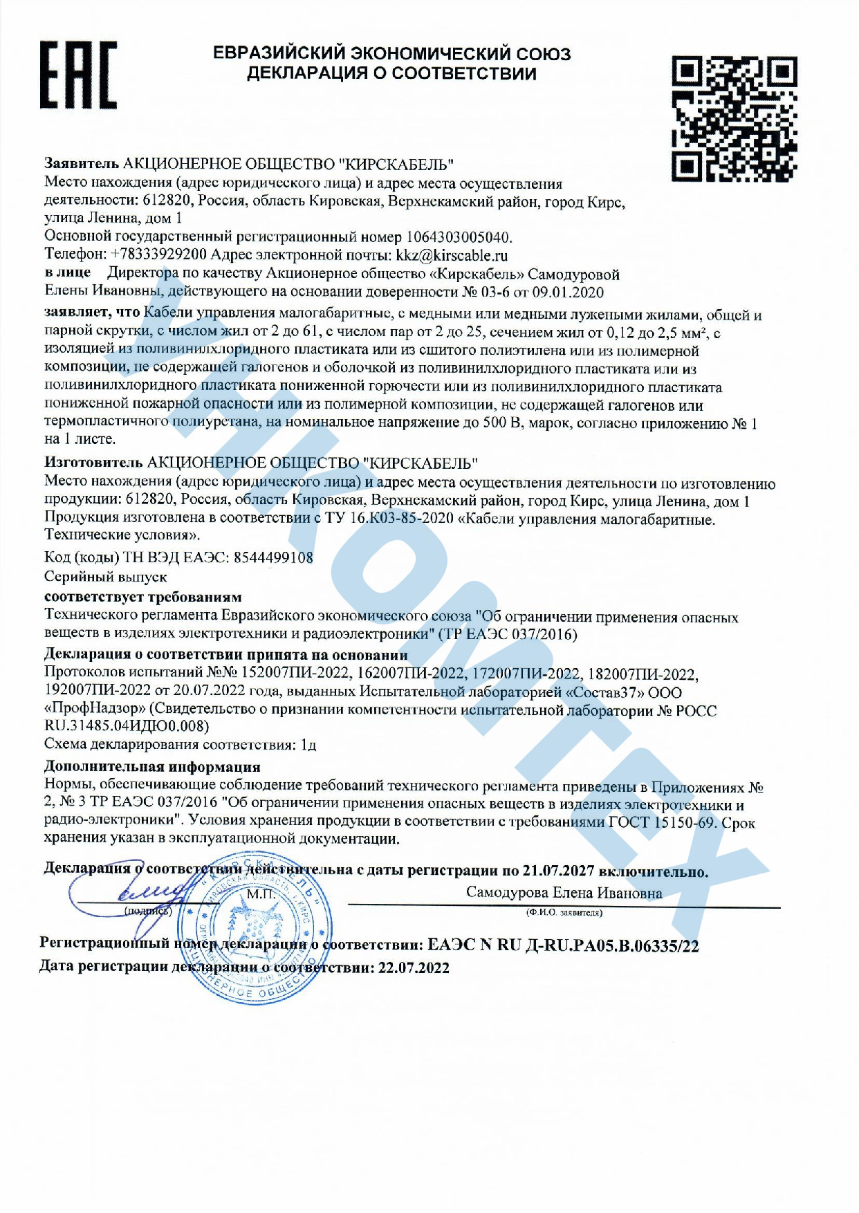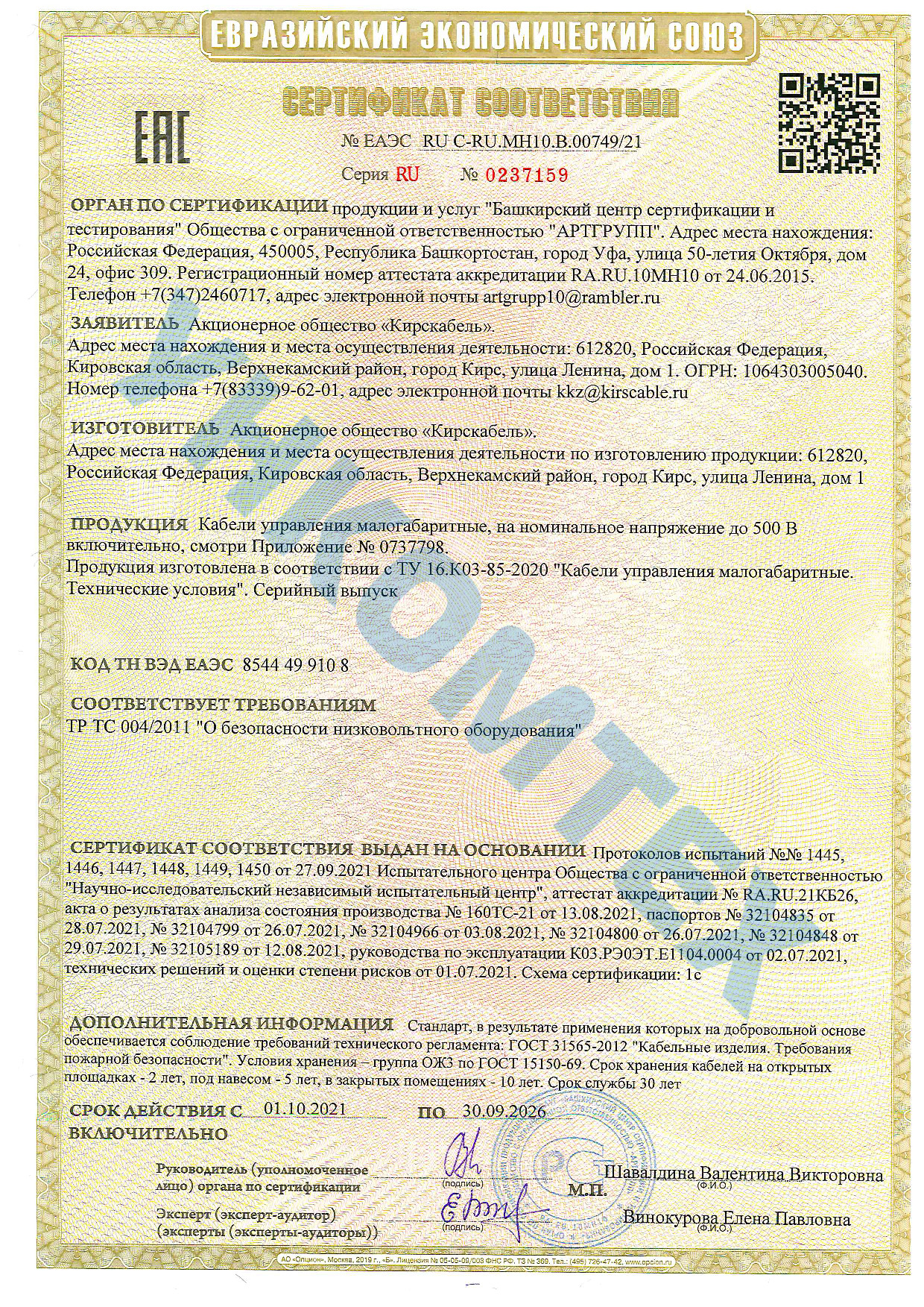 - Гарантийный срок эксплуатации кабелей - 7 лет.